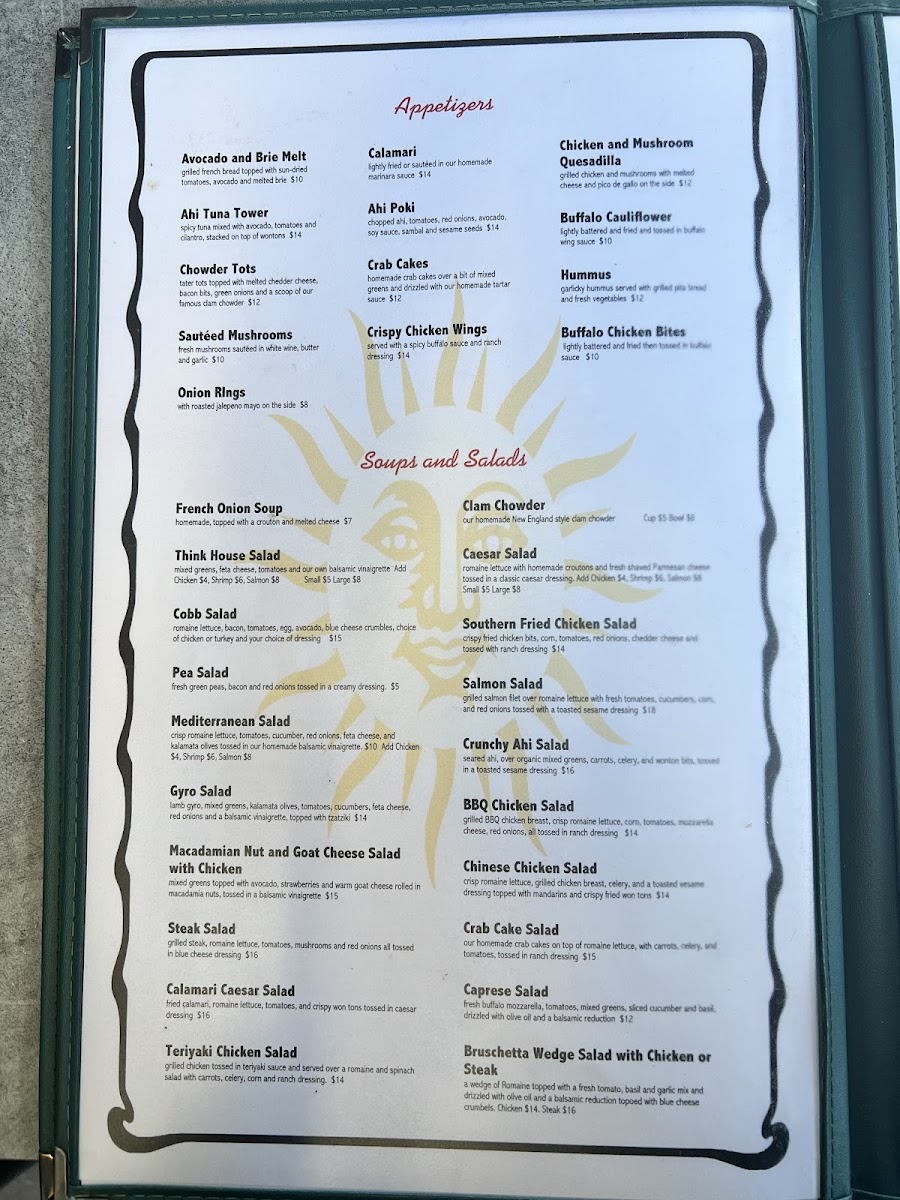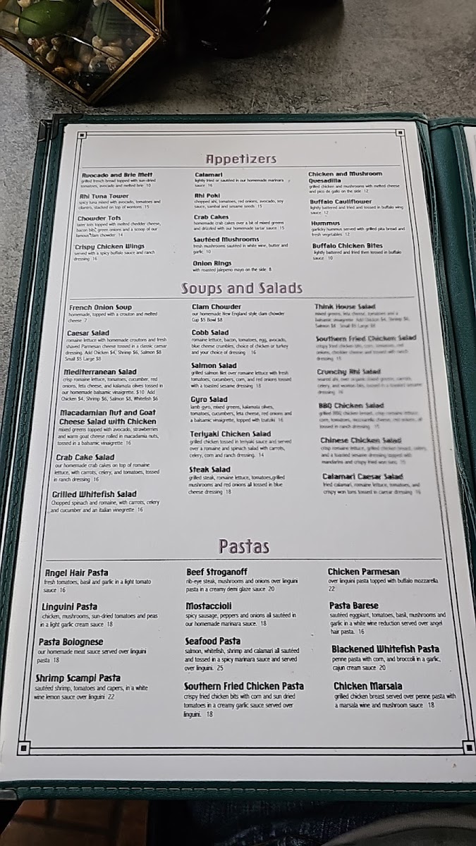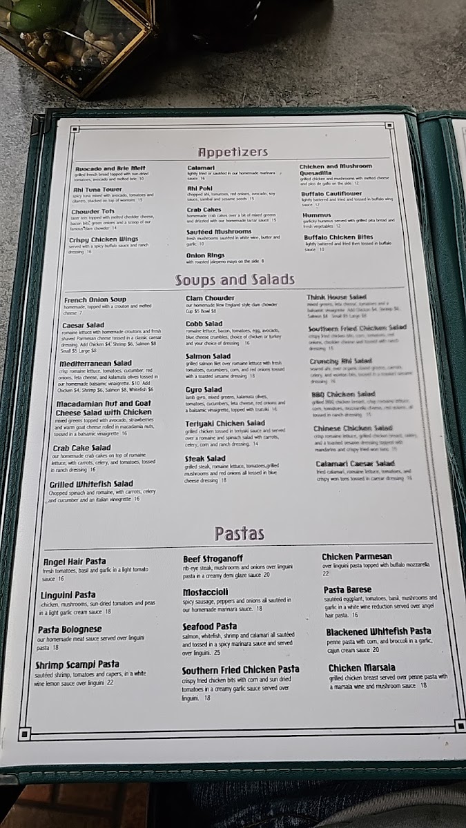 “ We just enjoyed a nice dinner with the church council. This was my first time dining there but our Pastor had eaten at Think before. He recommended the fish and chips and I wasn’t disappointed. The fish was cut thin and deep fried which is my preference. The staff were attentive and wonderful. The background Christmas music of Bing Crosby added a warm holiday feel. We will certainly visit again. ”