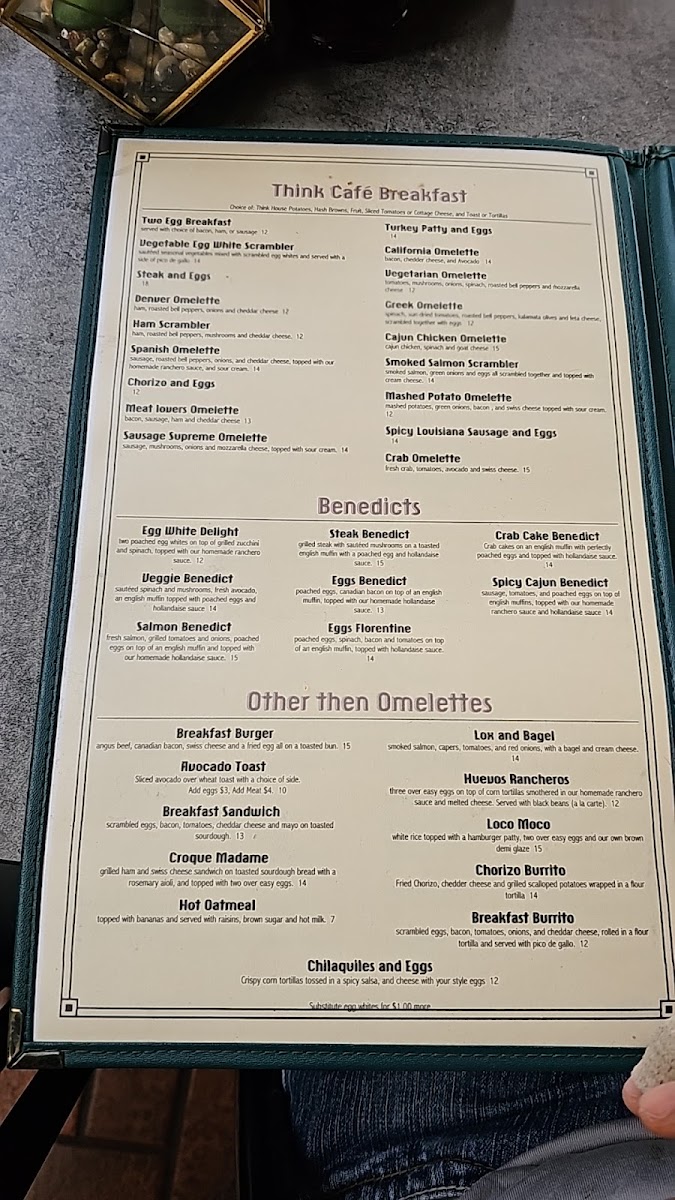 The adventurous among you will relish the opportunity to indulge in a large selection that caters to every taste. Whether you're craving a hearty breakfast, a fresh salad, or a comfort food classic, Think Cafe ensures there's something for everyone. The portions are generous, making it an ideal spot for families or anyone looking to enjoy a fulfilling meal with friends.